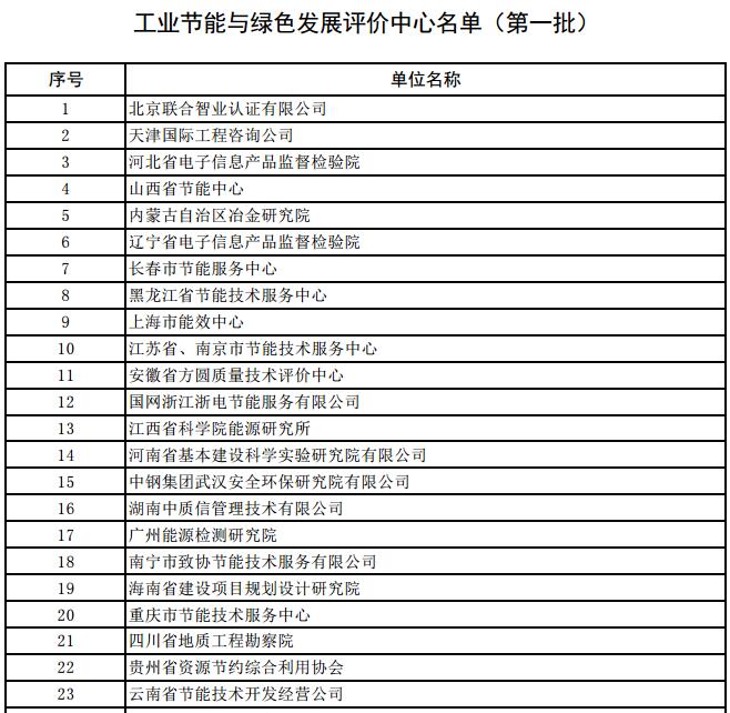 工業(yè)節(jié)能與綠色發(fā)展評(píng)價(jià)中心名單