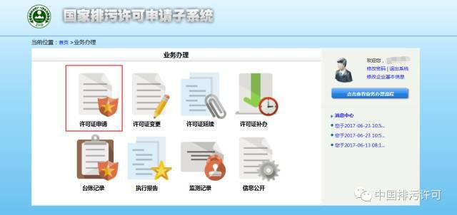 第一步:登錄排污許可申請子系統(tǒng),進(jìn)入申請模塊: