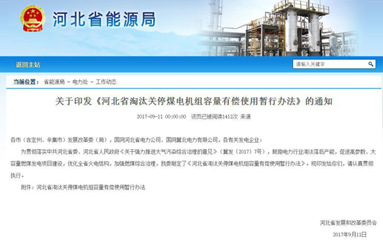 關(guān)于印發(fā)《河北省淘汰關(guān)停煤電機(jī)組容量有償使用暫行辦法》的通知