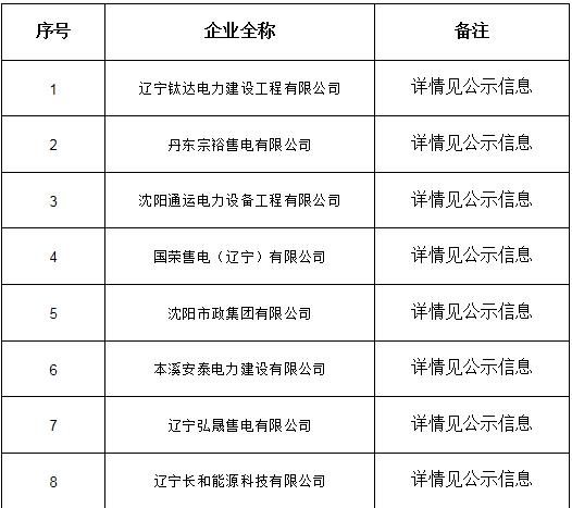公示期間,任何單位和個(gè)人如有異議,可以實(shí)名通過(guò)來(lái)電、來(lái)信、來(lái)訪等方式向遼寧電力交易中心反映。本次公示售電公司目錄如下: