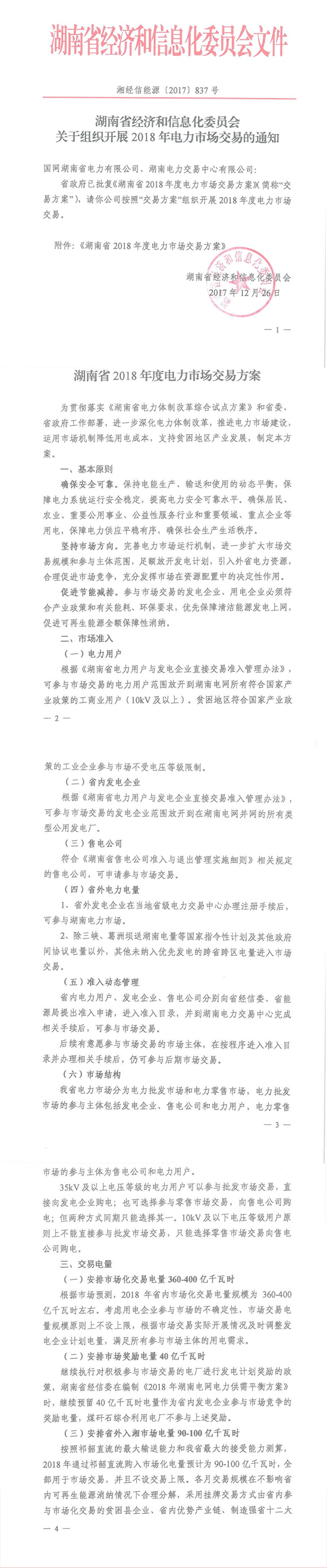湖南省經(jīng)信委發(fā)布:關(guān)于組織開展2018年電力市場交易的通知