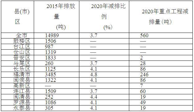 “十三五”各縣(市)區(qū)氨氮排放總量控制計劃