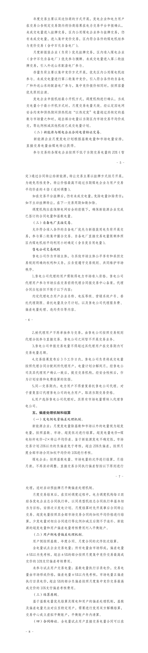 煤電企業(yè):超發(fā)電量按照其全部市場交易合同的加權平均價格進行結算,少發(fā)電量對相應合同進行等比例扣減且后期不予追補。