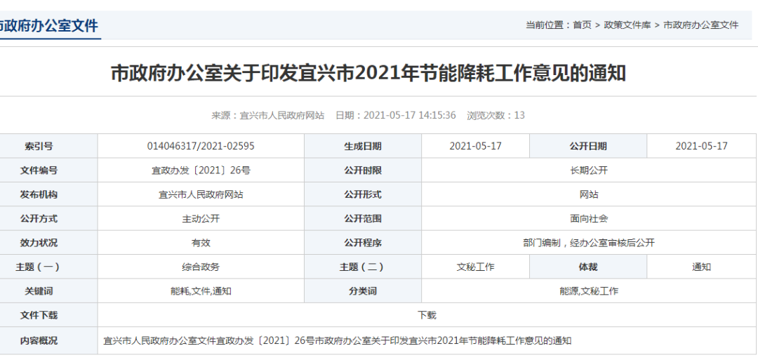 《宜興市2021年節(jié)能降耗工作意見(jiàn)》