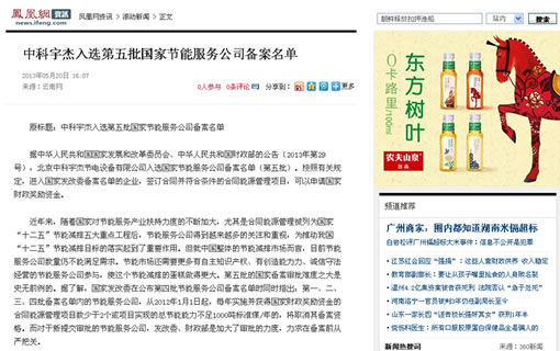 據(jù)中華人民共和國國家發(fā)展和改革委員會、中華人民共和國***的公告(2013年第29號),北京中科宇杰節(jié)電設(shè)備有限公司入選國家節(jié)能服務(wù)公司備案名單(第五批)。按照有關(guān)規(guī)定,進(jìn)入國家***備案名單的企業(yè),簽訂合同并符合條件的合同能源管理項目,可以申請國家財政獎勵資金。