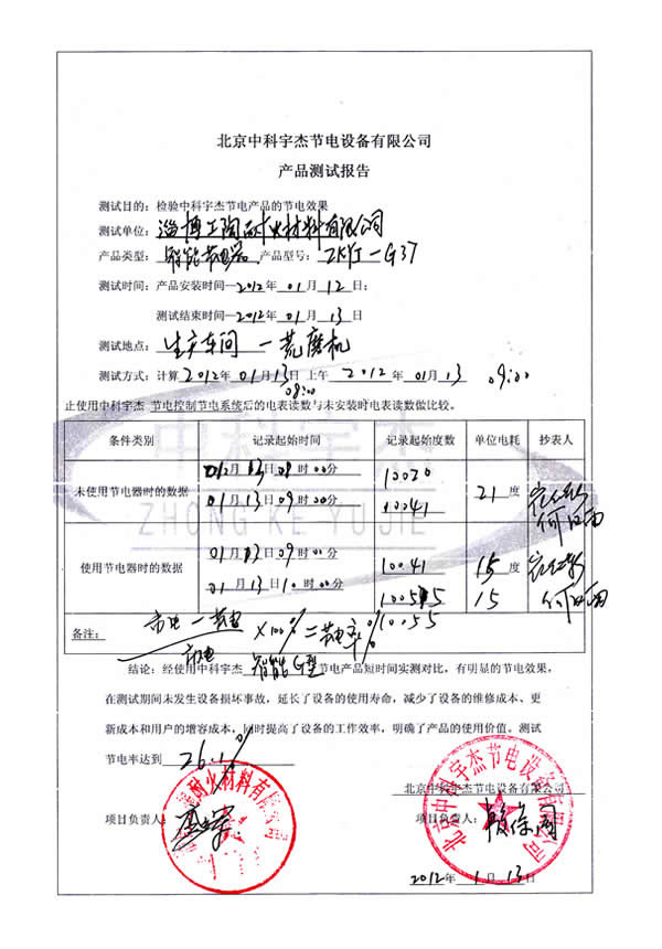 經(jīng)過我們公司工程師的分析,有較大的節(jié)電空間,經(jīng)測試安裝,幾臺(tái)設(shè)備的節(jié)電效果分別達(dá)到21.7%、25.9%、26.1%和40%。投資回報(bào)期1.5年。